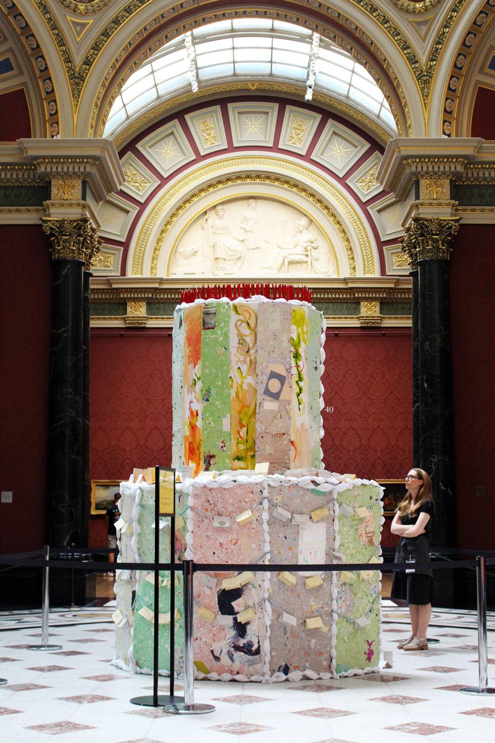 Hey it's May, This isn't you regular Paperslurry Weekly, because I thought you'd enjoy this special guest post by artist Lucie MacGregor! — May ​ ​Recycled Papermaking Art at Scale: A Big Cake Installation in the National Gallery​​Recycled papermaking isn’t just a sustainable way of making art. Based in London, Lucie MacGregor’s recycled paper artwork transcends into “a material that holds a collective archive.” Her artist statement explains “as a queer and neurodivergent artist, I find the levels of visibility within paper pulping an empowering notion.” Recently, the artist completed Nobody gave it you on a plate, a truly impressive pulped paper installation for the National Gallery in London, and took the time to share the experience with us all. Enjoy this guest post! — May Babcock